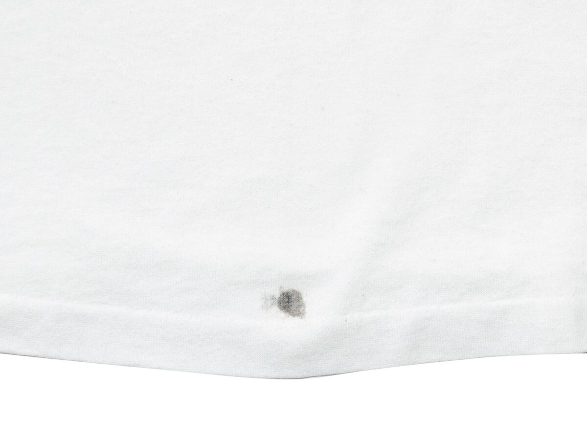 状態:右袖にかなり薄いしみ(11枚目の写真)、フロントの裾の左側に線上のしみ(12枚目の写真)、背中側の裾に丸いしみ(13枚目の写真)あり