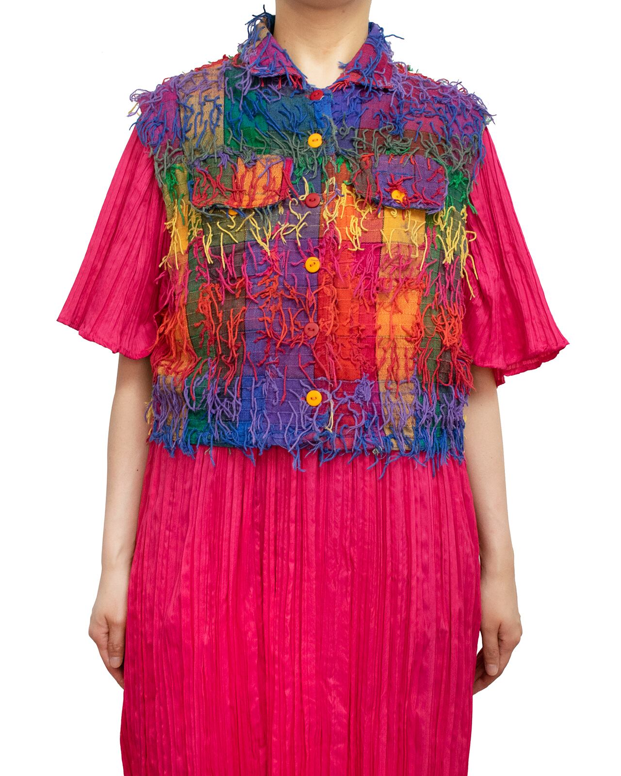カラフルでもけもけのベスト。
