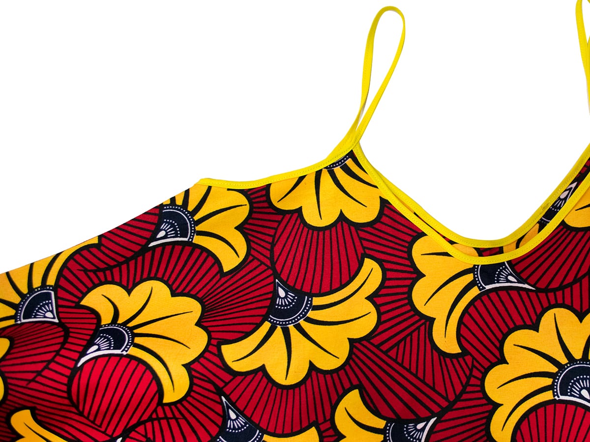 アフリカンバティックのボリュームたっぶりなキャミトップス。