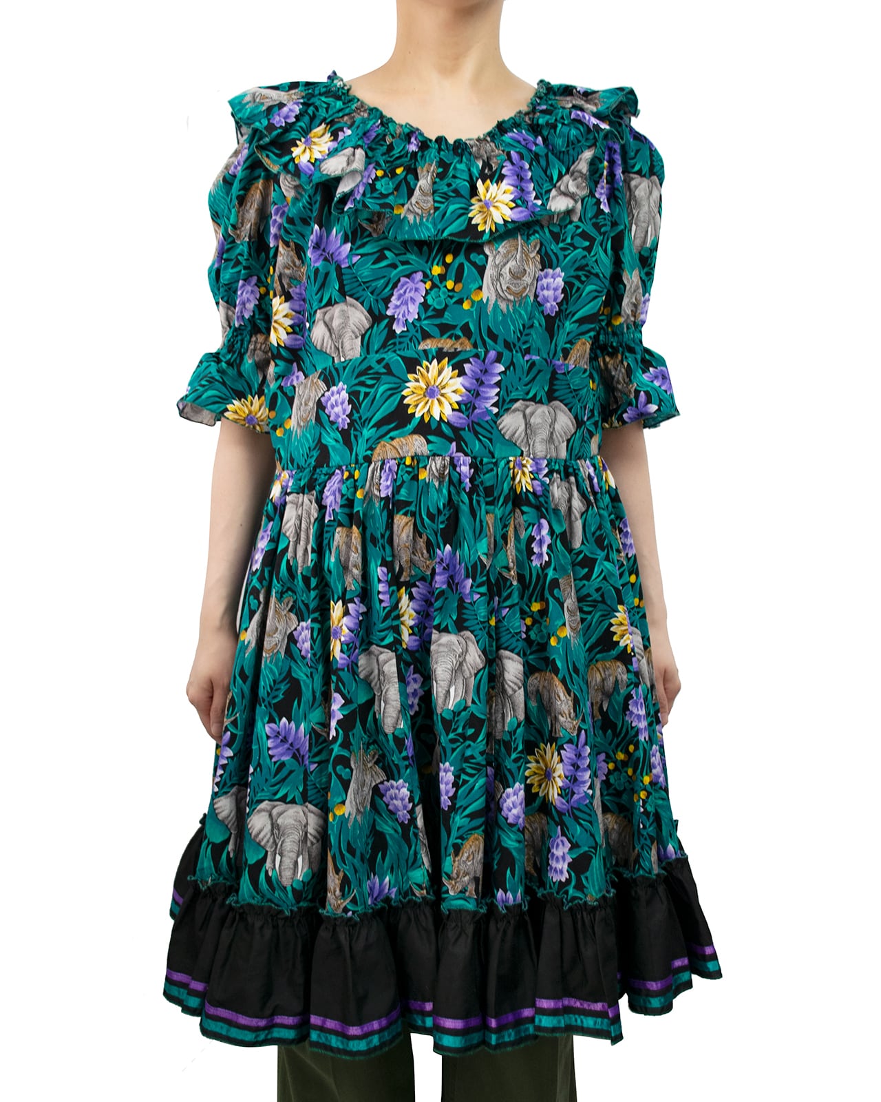 ジャングル柄のデザインワンピース。