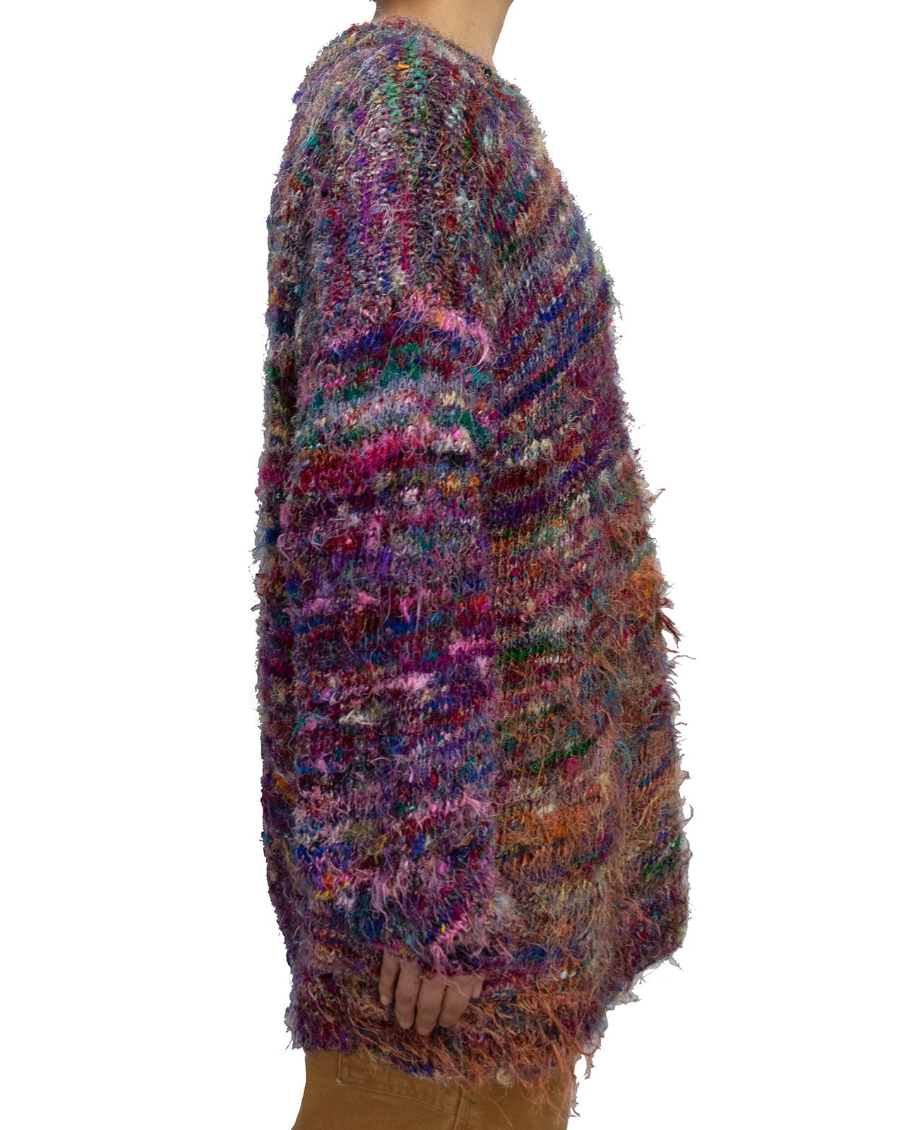 カラフルなシルクの細い糸でぎっしりと編まれたニット。
