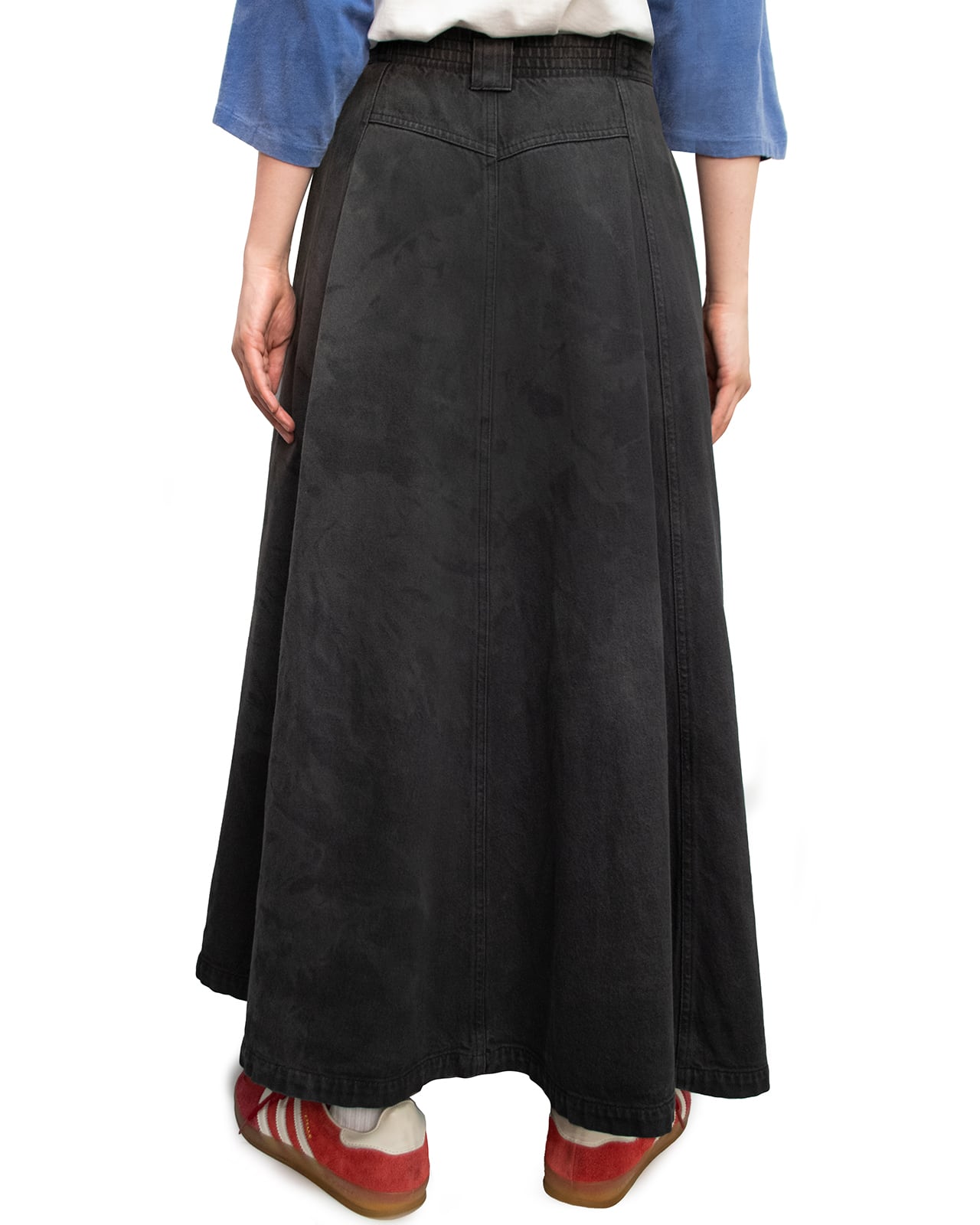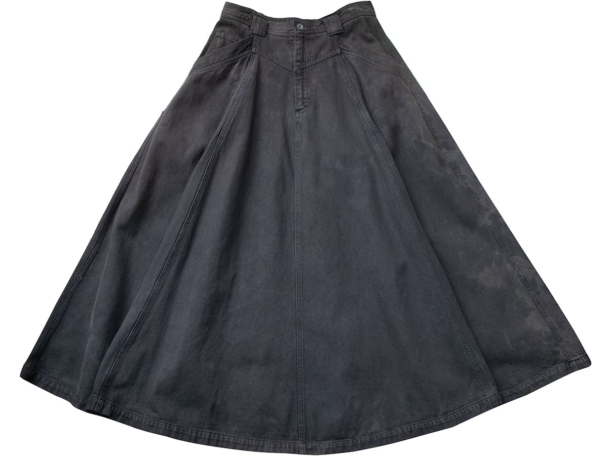 いい雰囲気なブラックデニムのボリュームたっぷりなスカート。