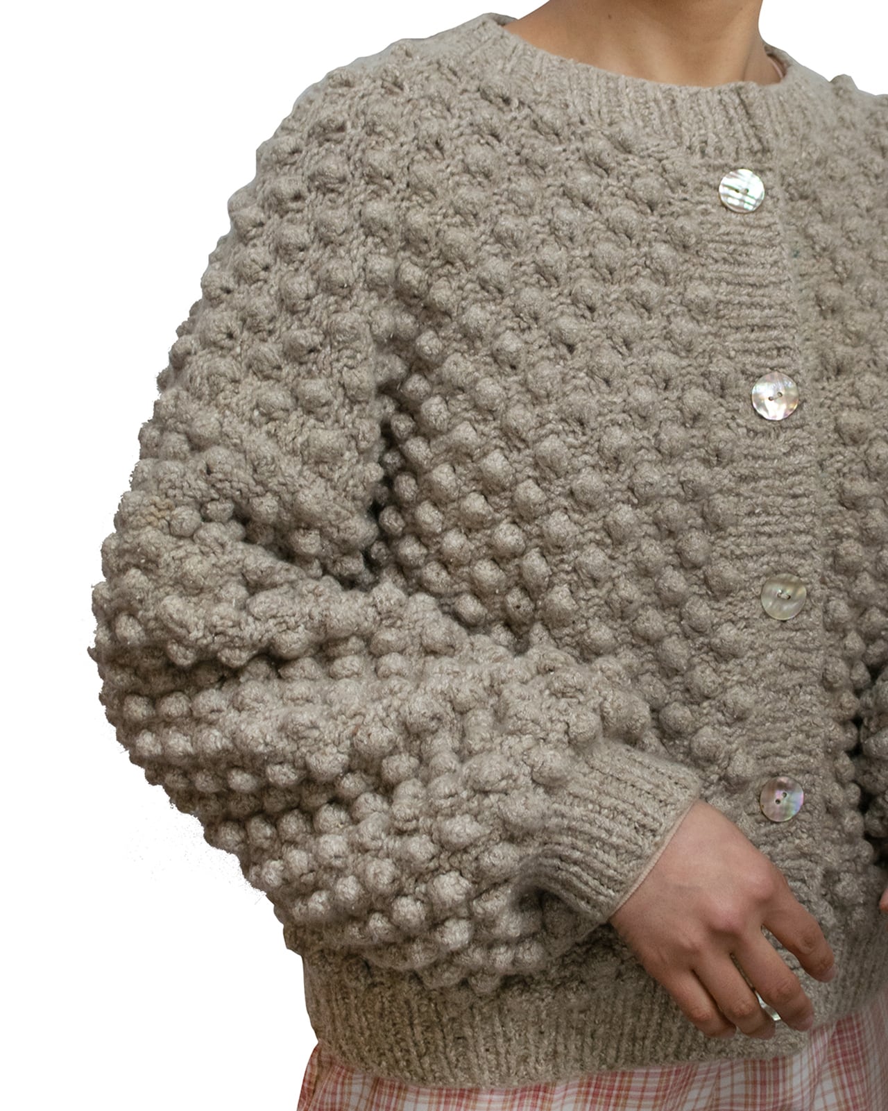 ぽこぽこデザインとショート丈が可愛いニットカーディガン。