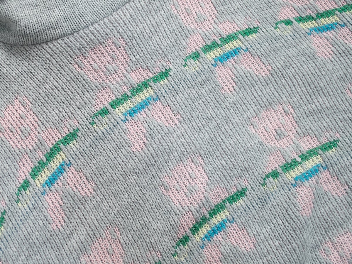 グレーベースにピンクのテディベア柄。