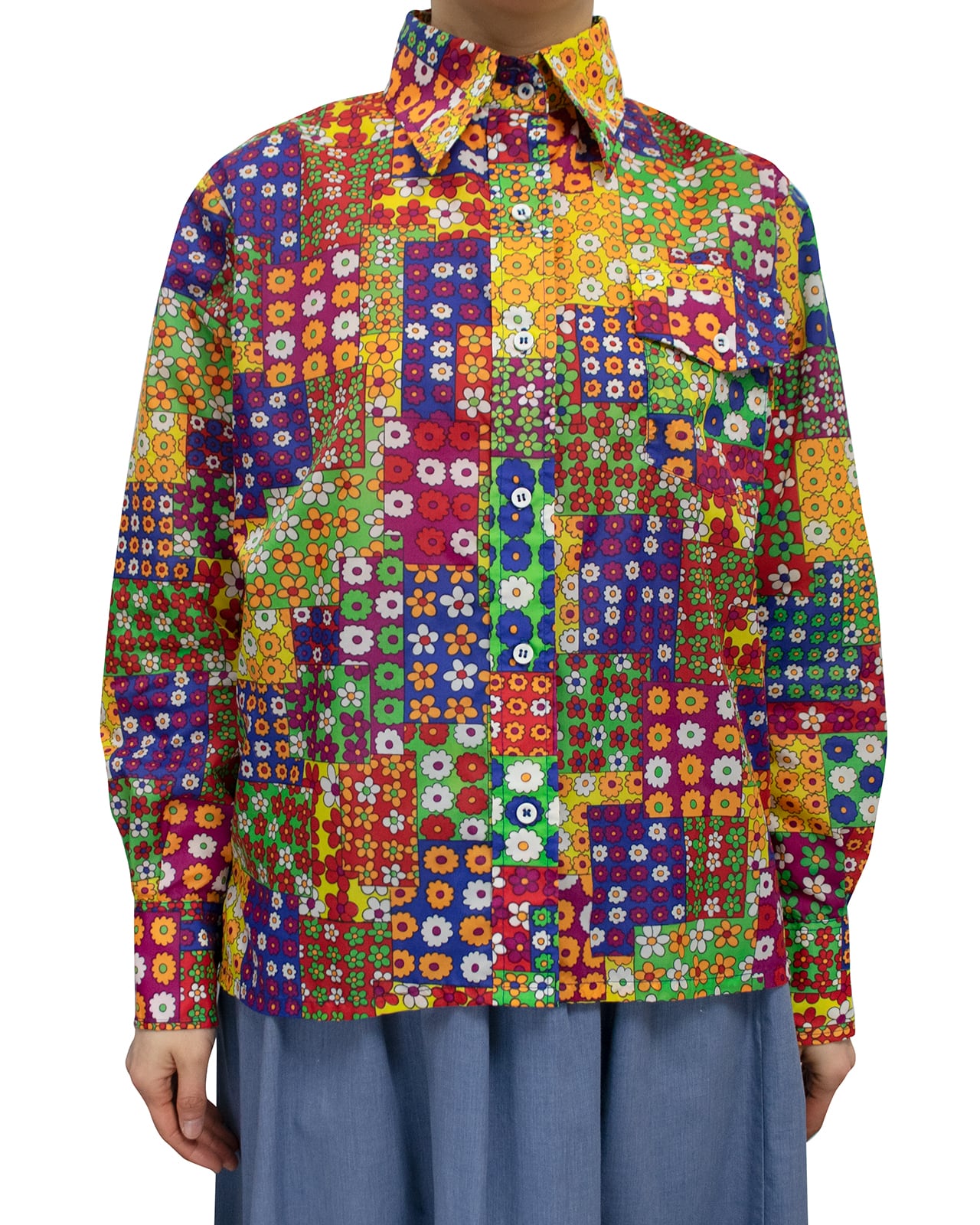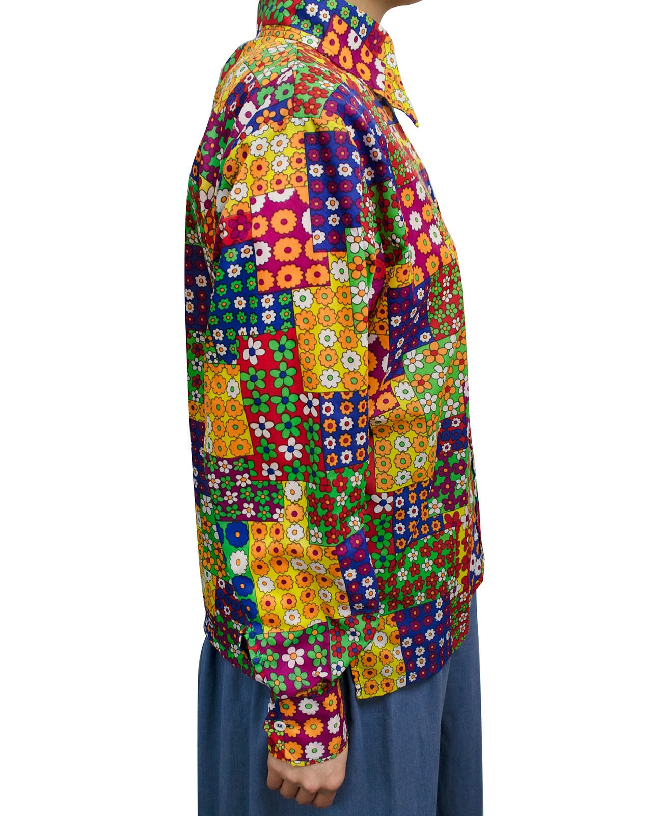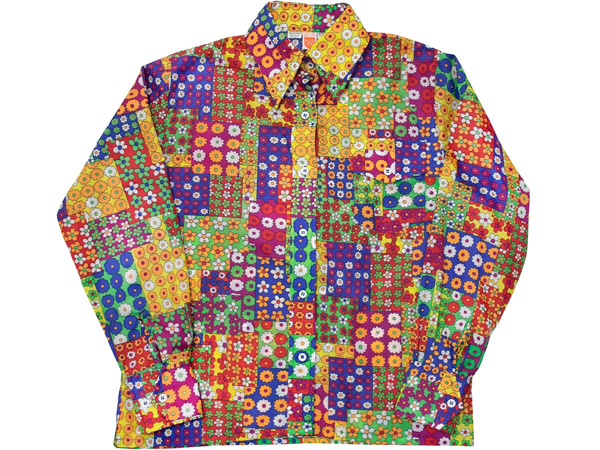 70年代らしい花柄のシャツですが生地がナイロンっていう遊び心。
