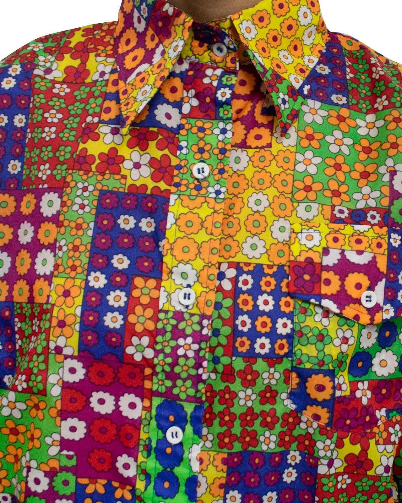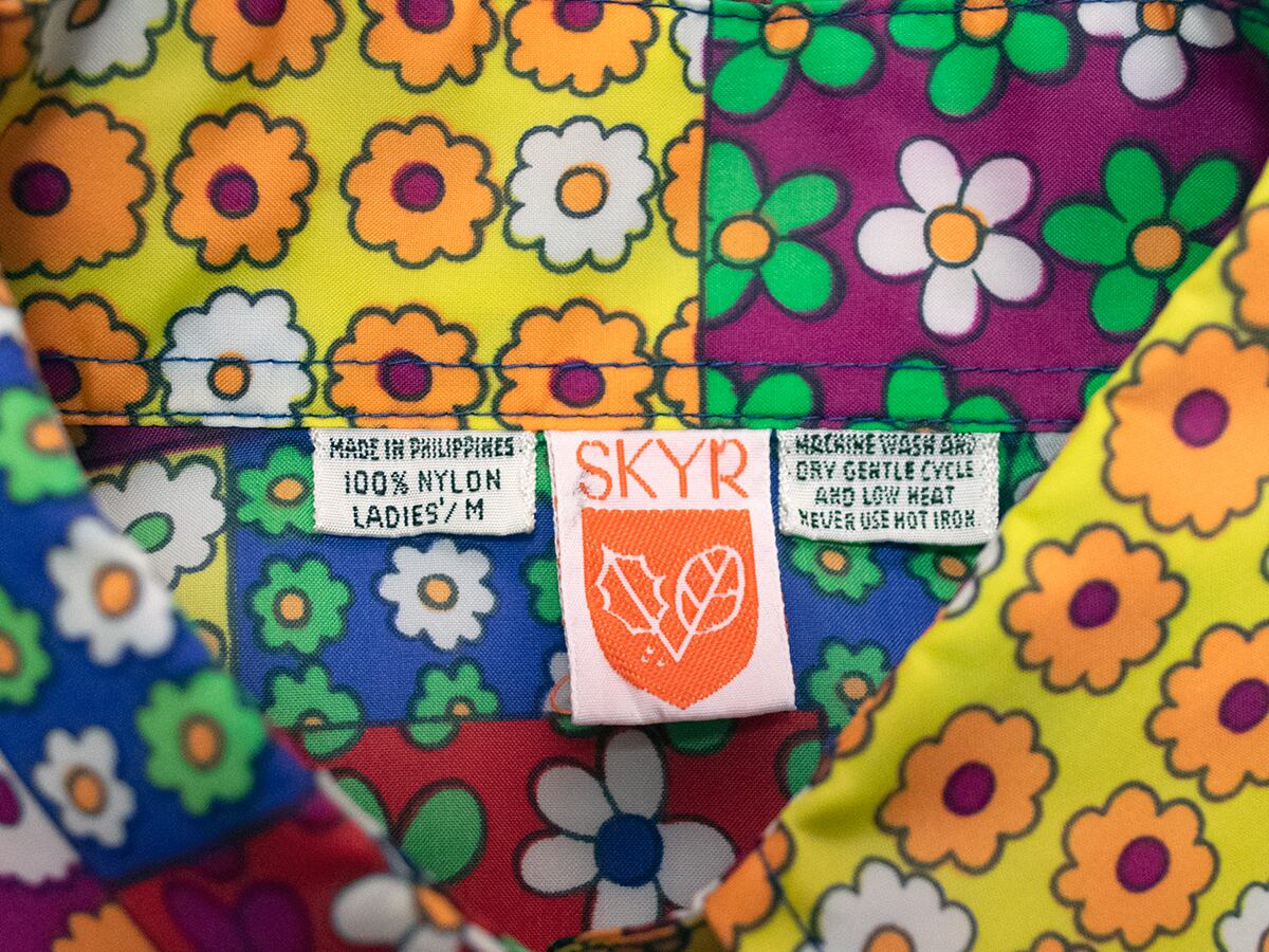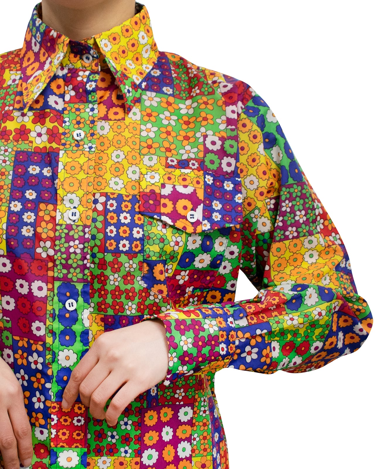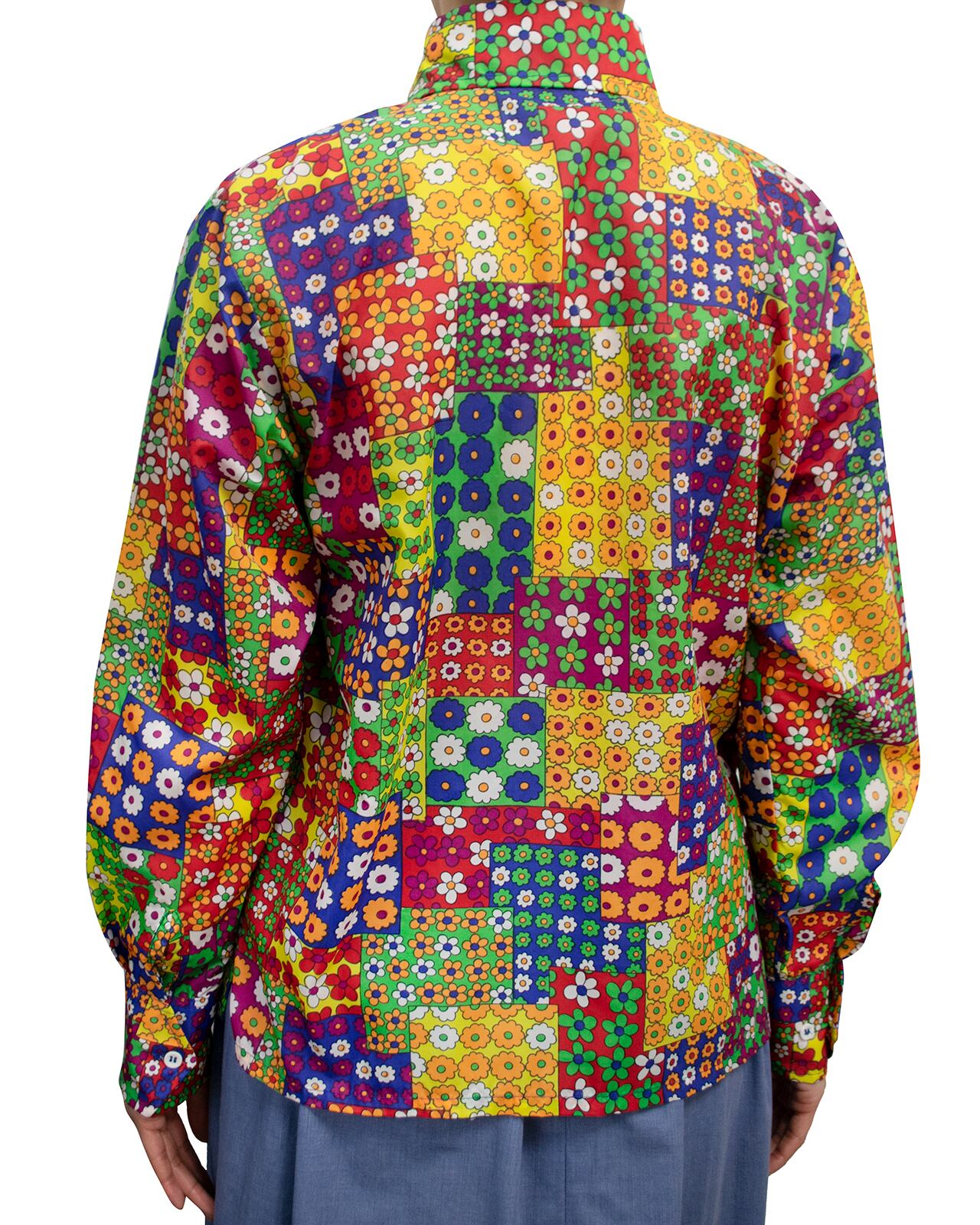 70年代らしい花柄のシャツですが生地がナイロンっていう遊び心。