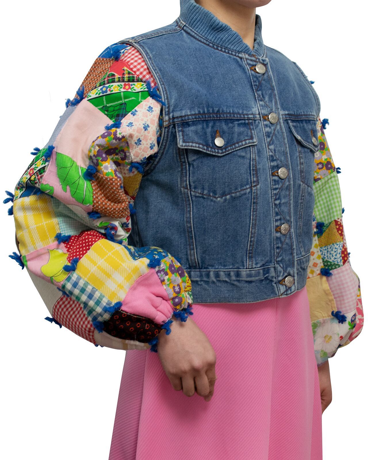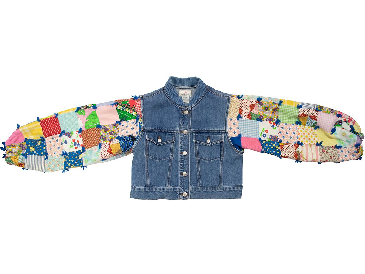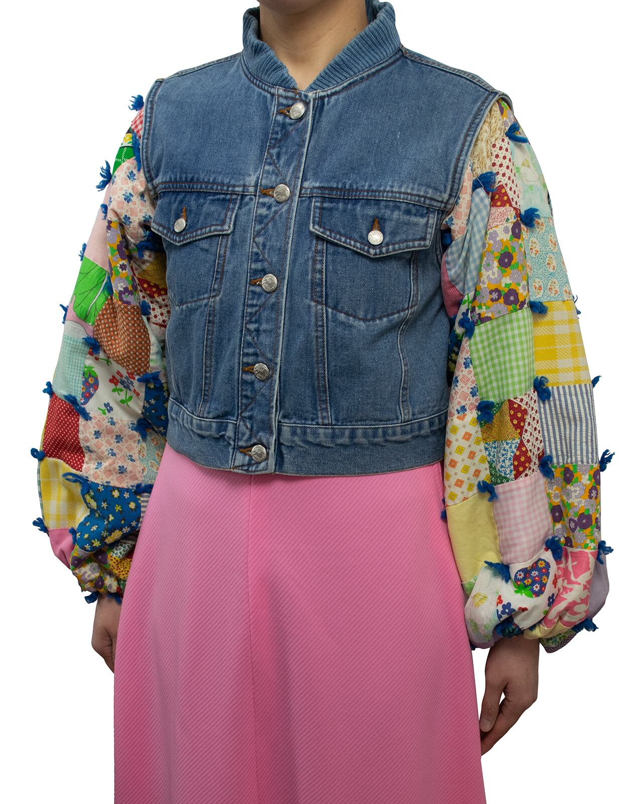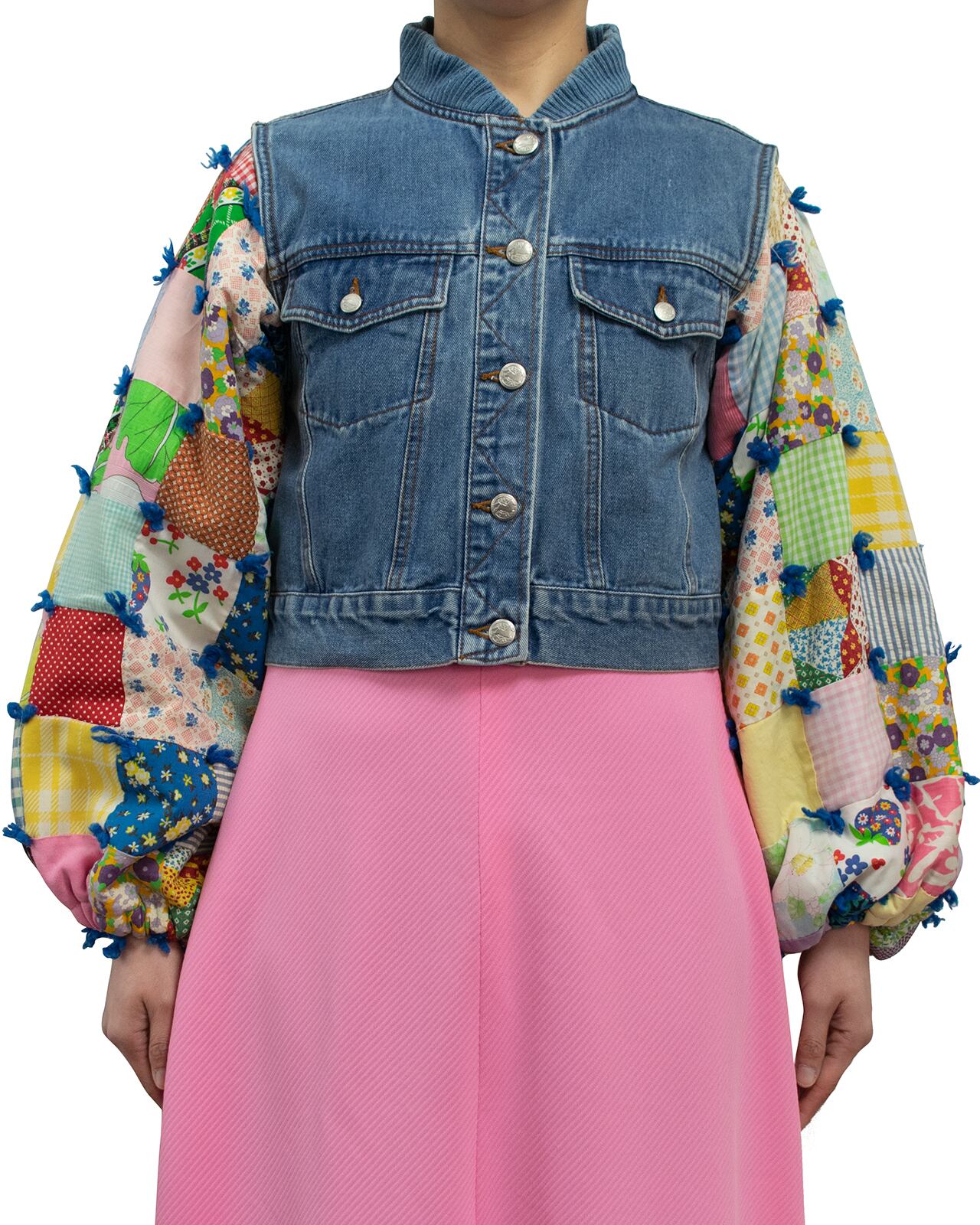 袖がバルーン状のパッチワークになったデニムジャケット。