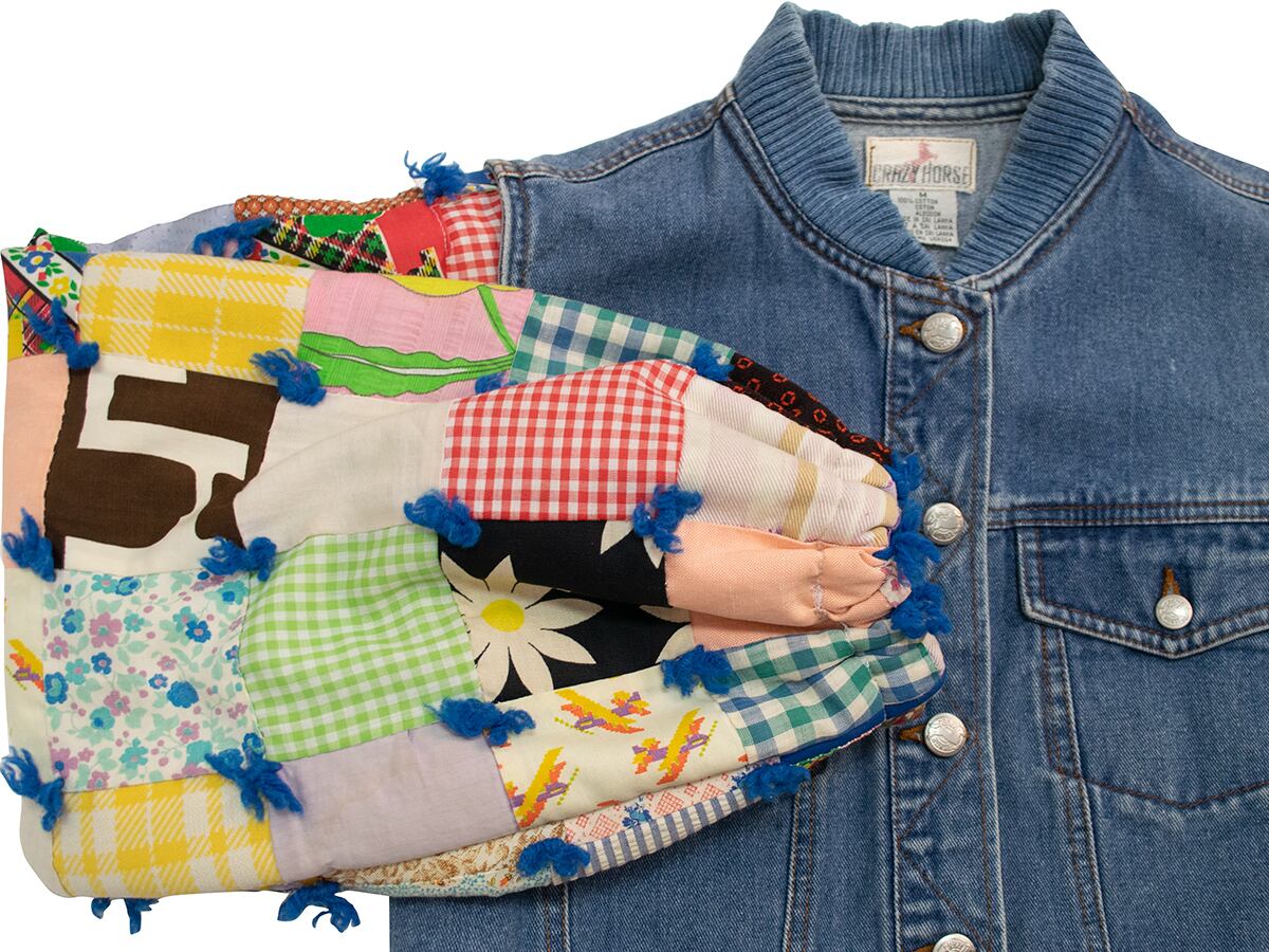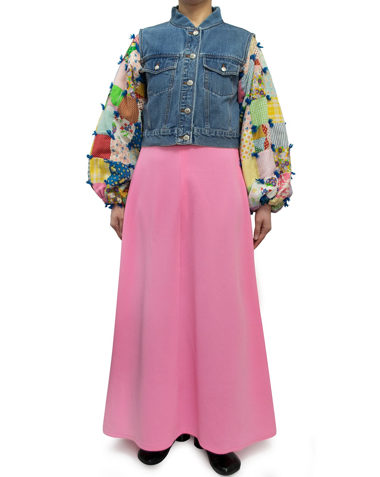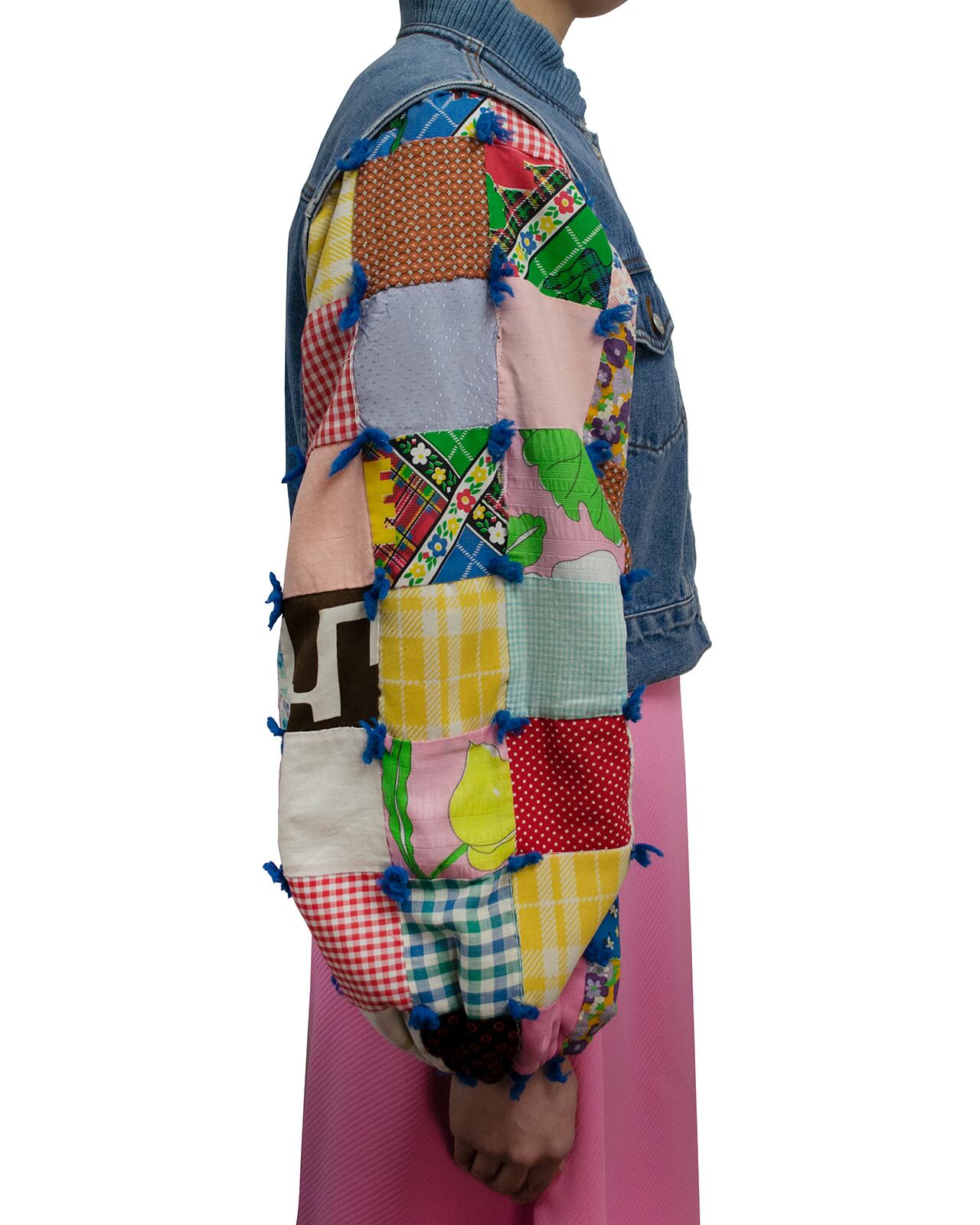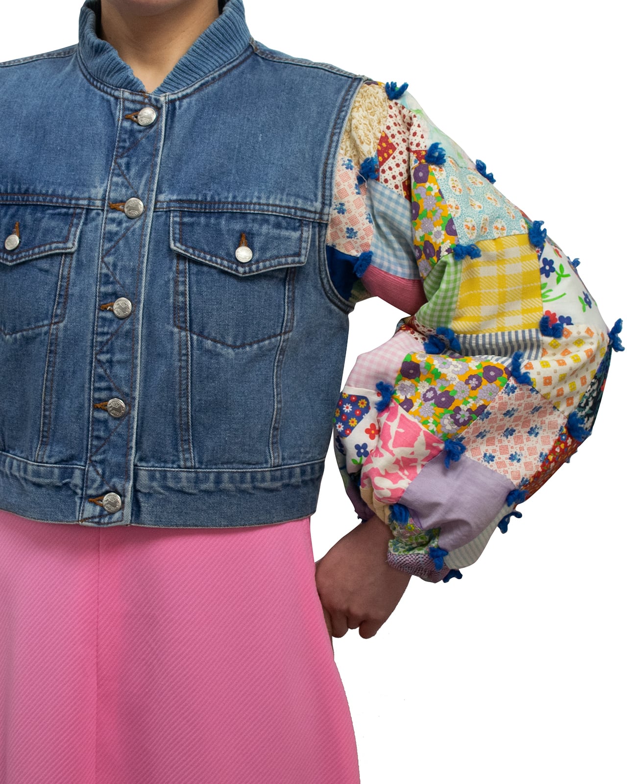 袖がバルーン状のパッチワークになったデニムジャケット。