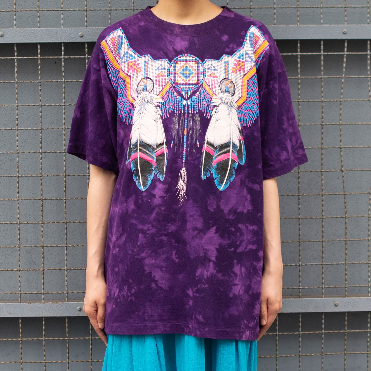 パープル系のタイダイにネイティブアメリカンの装飾をプリント。