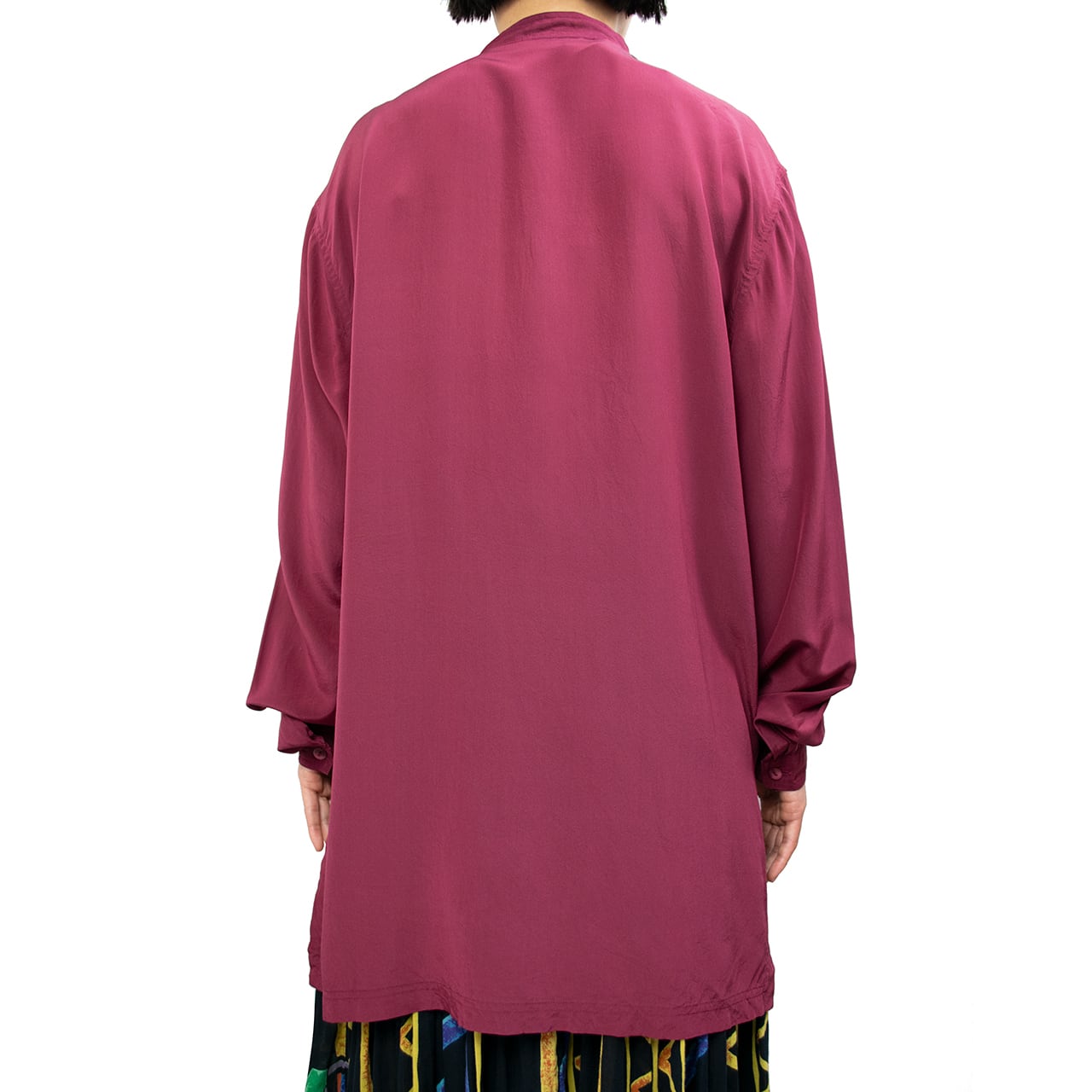 えんじのシルクのデザインシャツ。