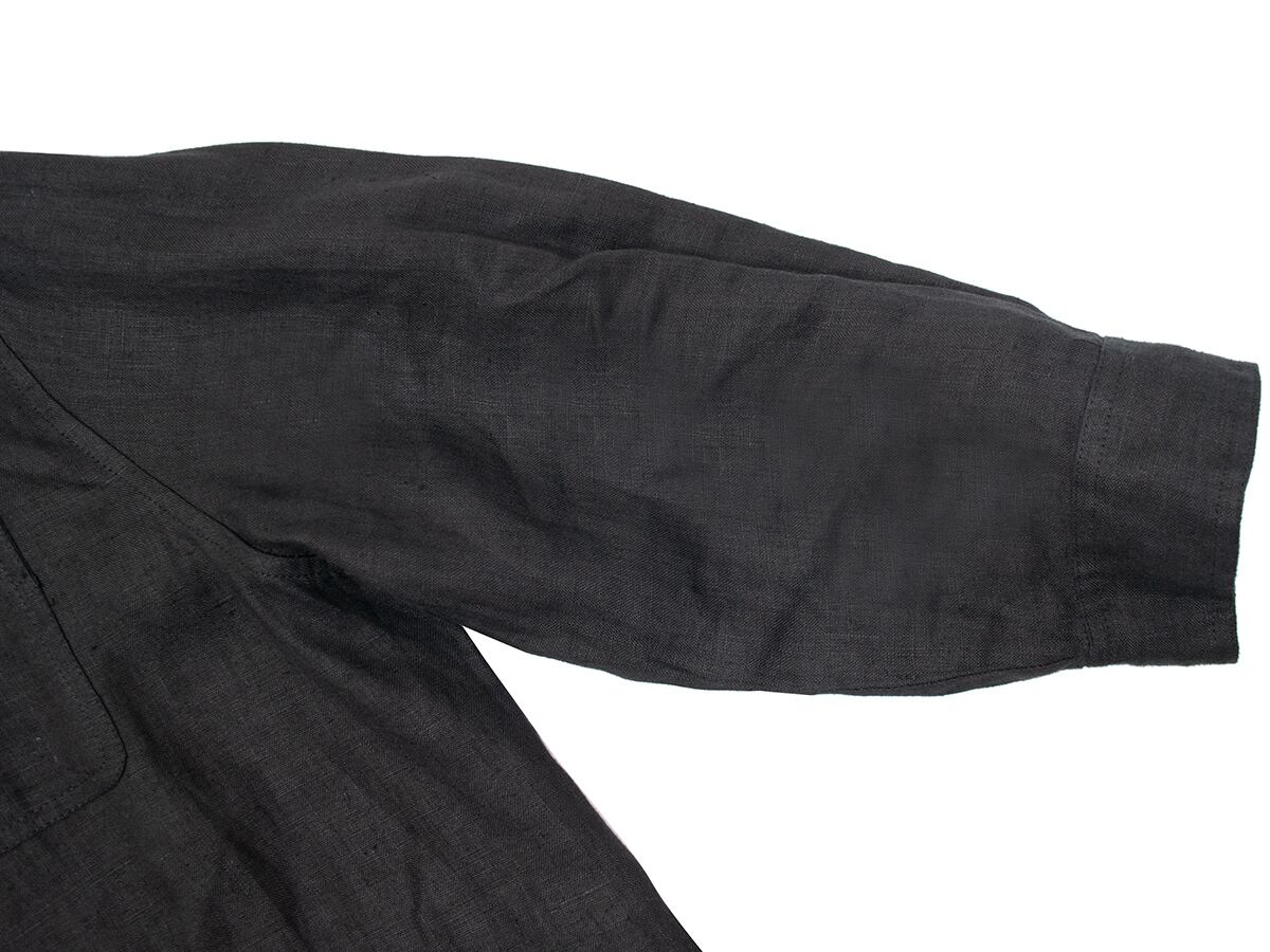ブラックのリネンのデザインシャツ。