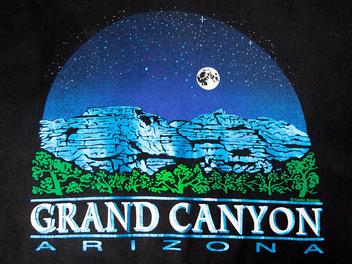ラメプリントが月に照らされた夜のグランドキャニオンを表現。